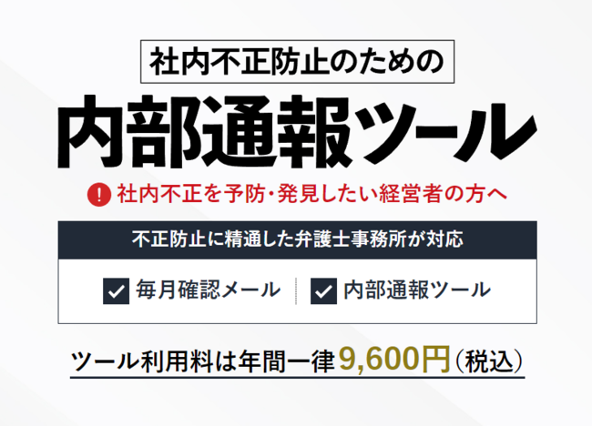 アトム法律事務所は、横領背任、情報流出、パワハラ、セクハラといった社内不正を予防・早期発見するための新サービス、「内部通報ツール」を2022年8月1日にリリースいたしました。