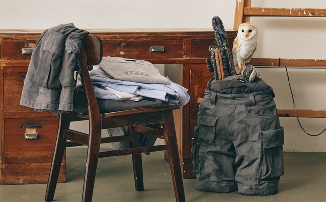 今回は、ワークウェアとしてのデニムのイメージを維持する一方で、質の高いブリーチデニムウォッシュ技術を、LAKHを代表する「10ポケット・カーゴパンツ」および「10ポケット・カーゴショーツ」に採用し、ヴィンテージスタイルを打ち出します。