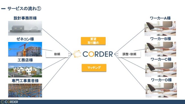 サービス開始から顧客数50社、ワーカー数100名、案件数150件を突破し、既に東証一部上場の大手ゼネコン様とも複数お取引がございます。今後「CORDER」のさらなる事業拡大を図るべく、このたびの調達資金は人材採用および開発に充当し、組織基盤の強化に取り組みます。