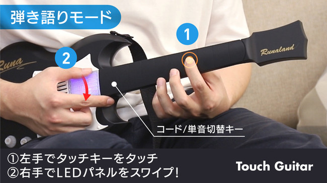 タッチキーをタッチして、LEDパネル(弦部)をスワイプするだけで演奏が成立!