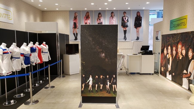実際に着用したステージ衣装・パネル展示、自由に写真が撮れるフォトスペース等、DreamNotの魅力をたっぷり感じられる空間。