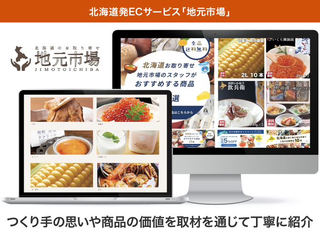 株式会社ロカラの運営する「地元市場(じもといちば)は、小規模な農家や漁師などの生産者が忙殺されて取り組めていないECサイトへの出品や受発注業務の顧客管理を行い、北海道発の豊富なラインナップを取り揃えています。現在までに「地元市場」に出品した生産者数は200社以上、商品点数は500点を超えています。