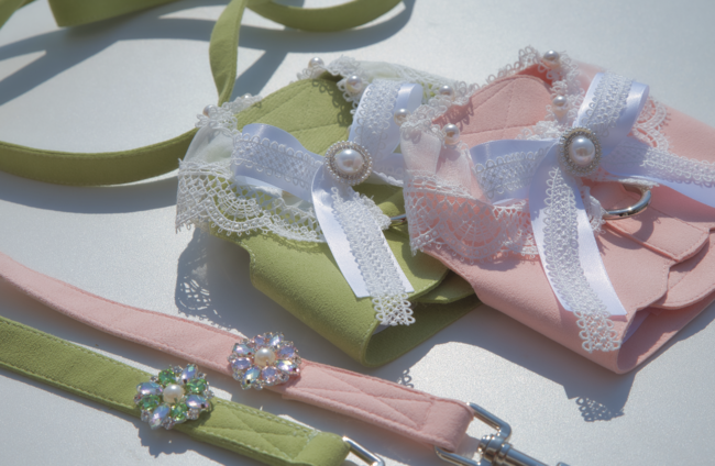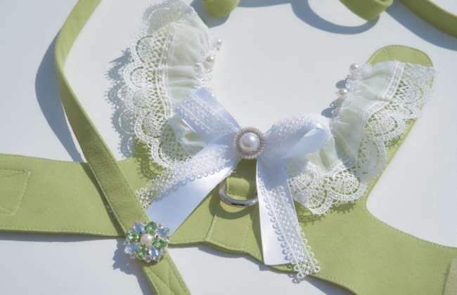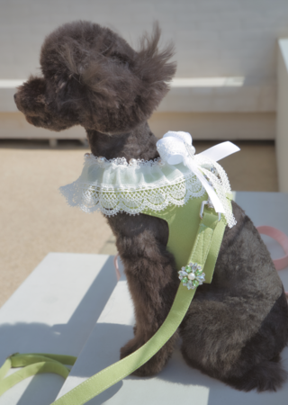 名称:Lace Collar Harness + Leash(Flower Petal Pink・Bud Green)