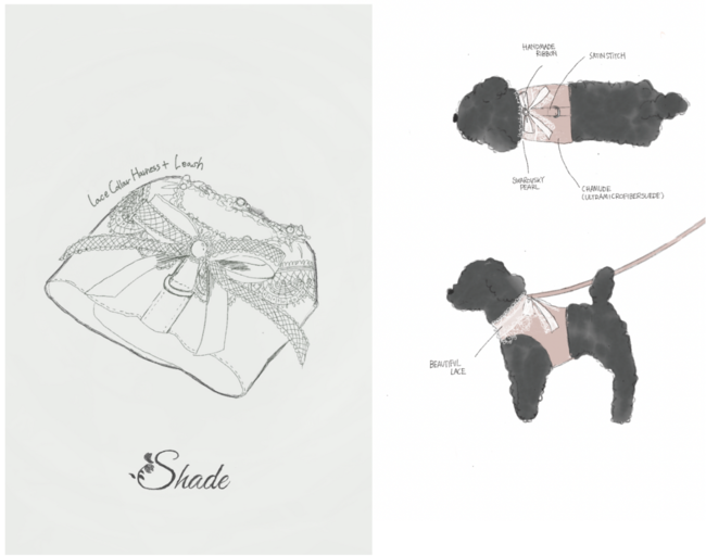 ワンちゃんやネコちゃんに安心安全で着心地も良く、飼い主にも、その性能とデザインに満足していただけるような人間と同じレベル、またはそれ以上のレベルのデザインと品質のペットウェアを作りたいと考えています。長く愛犬と過ごしていますが、Shadeのウェアは自分の愛するパートナーが着るという考えで作っています。私の愛犬が拒否したり頻繁に着たがらない、有害な素材やペットたちに不便な服は絶対に作らないという思いで、デザインをしています。しかし、その基準をクリアしながらも華やかでユニークなコレクションを披露しShadeならではの世界観を作り上げ、手にする全てのペットたちが特別で輝けるようなウェアブランドを目指します。