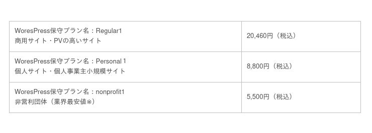 <WordPressセキュリティー&保守料金の金額>