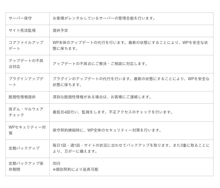 <ワードプレス・保守項目>