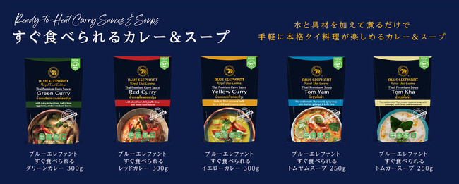 BLUE ELEPHANT(ブルーエレファント)日本正規代理店のジェントス株式会社(本社:東京都台東区、代表取締役社長:岡崎 誠)は、2022年7月25日よりタイ料理を簡単に家庭で楽しめる「すぐ食べられるカレー&スープ」を発売します。