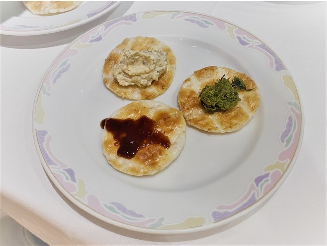 実際にお店で提供する際のデモンストレーションとして、「秋田ばっけみそ味」のディップソースをお煎餅にたっぷり乗せて、お酒に合わせてお客様に提供。「お煎餅とふきのとうのマリアージュには、ハイボールやビール、地元のクラフトジンといったお酒が合う」と、お酒の専門家ならではの感想を語ってくださいました。
