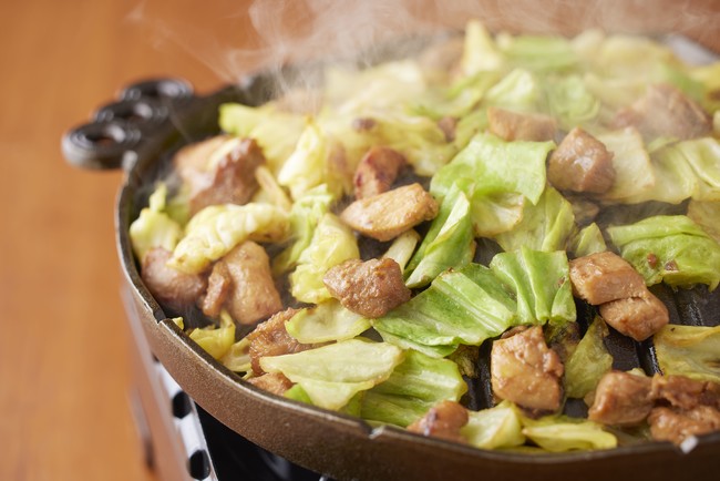 まんぷく亭では、けいちゃんをジンギスカン鍋で提供するスタイルにより、美味しい肉汁や油を感じながら食べて頂けます。