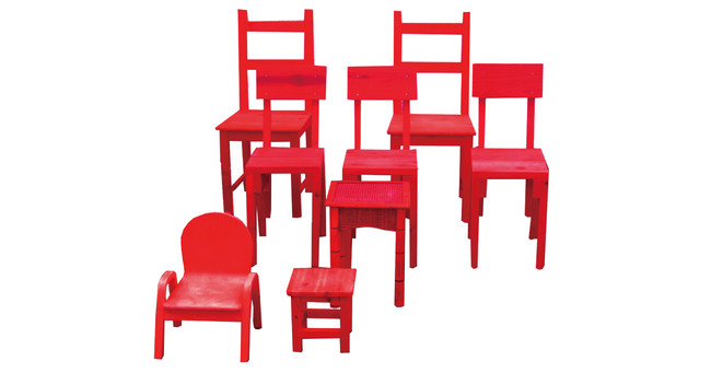 高崎モントレーでも使わなくなった椅子を赤く塗り、館内の休憩場所として設置いたします。