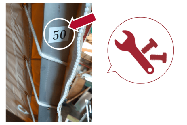 骨組みパーツに印字された番号を合わせ、スパナでボルトを締めます。最後に骨組みの上からビニールシートをかぶせて設置完了。1台あたり約30分で設置や解体ができます。
