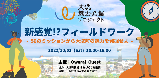 Owarai Quest(大洗クエスト)は、茨城県大洗町の地域づくりに関わる人たちを増やす関係人口の創出を目的に活動をしています。この度、第3弾となるイベント「新感覚!?フィールドワーク -50のミッションから大洗町の魅力を発掘せよ-」を2022年10月1日(土)に開催します。