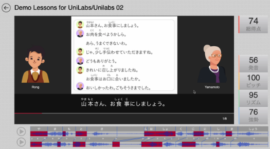 本商品のMyJT(日本語), MyET(英語), MyCT(中国語)は、音声を聞いて、それを復唱し、その復唱を「発音・ピッチ・リズム・強勢」で数値化・評価し、かつその復唱した音声を自身で比較・確認することができるという画期的システムです。