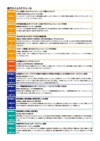 大会では、スポーツビジョンの活用に関する現場からの報告から、ビジョントレーニングの効果に関する最新研究報告までスポーツビジョンを健康づくりに役立てるヒントが見つかります。当日は講演者へ直接質問することもできます。
