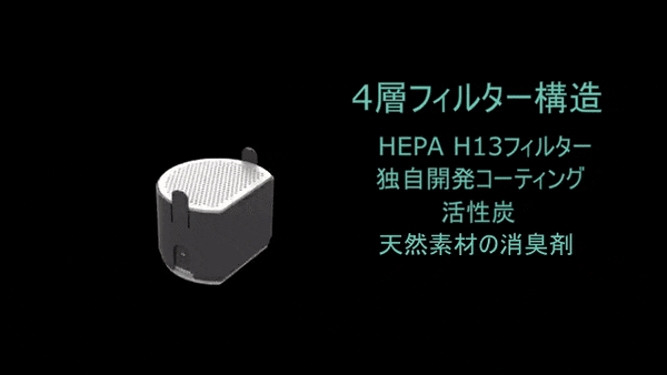吸引された空気はメーカーが独自開発したフィルターを通過することでニオイやタバコの煙だけでなく、0.3μmの粒子も99.97%捕集します。