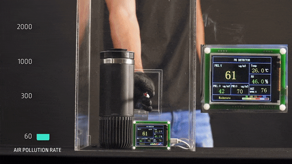 コンパクト空気清浄機ながらCADR(クリーンエア供給率)25.5m3/hというパワフルな供給量により、たった7分間で車内の容積に相当する空気を吸い込み、清浄された空気に換えることができます