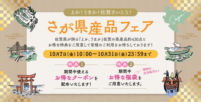 2022年10月7日(金)10:00~10月31日(月)23:59の期間、佐賀の県産品がいつもよりお得に試せるチャンスです!