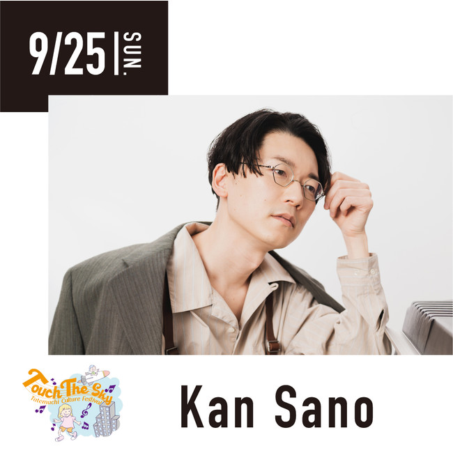 また、Tom Mischが「Kan Sanoのファンだ」と公言し、自らの日本・韓国公演のオープニングアクトに指名するなど国内外で活躍。また、プロデューサー、キーボーディスト、リミキサーとして、Chara、UA、平井堅、絢香、m-flo等、多数のアーティストのライブやレコーディングへも参加、CM音楽や劇伴も数多く担当している。2022年、最新アルバム『Tokyo State Of Mind』をリリース。“Kan Sano” の名は、様々なシーンに破竹の勢いで浸透中。金沢では久しぶりのバンドセットでのライブです!!お見逃しなく!!