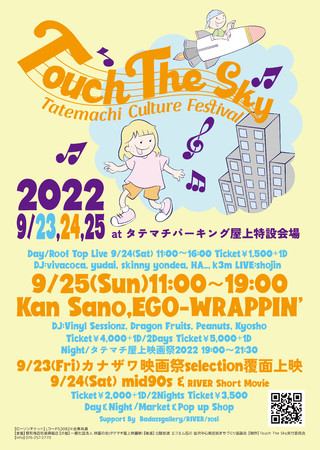金沢竪町商店街(石川県金沢市竪町)は、 2022年9月23日(金) ~9月25日(日) に竪町パーキング屋上特設会場を舞台として、「Touch The Sky Tatemachi Culture Festival」を開催いたします。