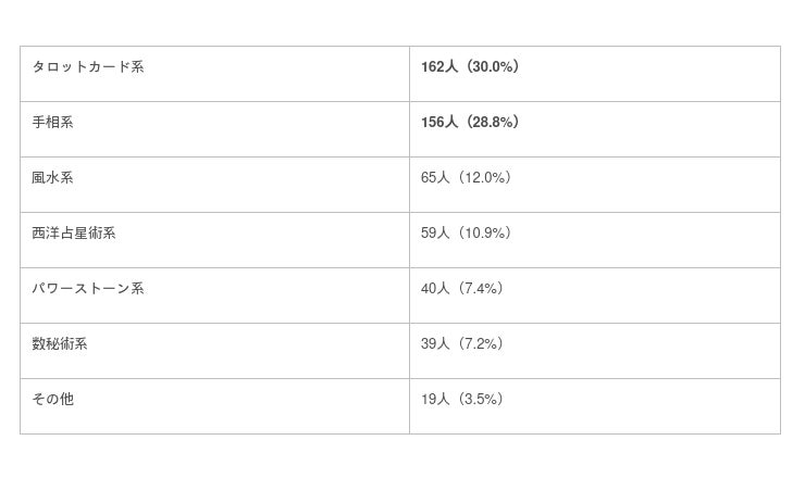 第3位以下の風水・西洋占星術系と比較しても3倍近い割合になり、今後も根強い人気が続くと予想できます。