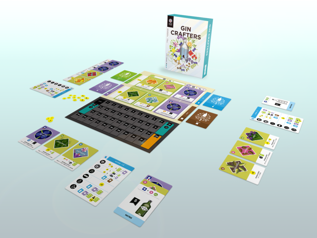 『ジンクラフターズ』はクラフトジンの製造をテーマにした世界初*のボードゲームです。プレイヤーはジンを作る職人になり、当代一の名人を目指します。数多くのユニークな風味をもつボタニカルを組み合わせて、素晴らしいジンを作りましょう。
