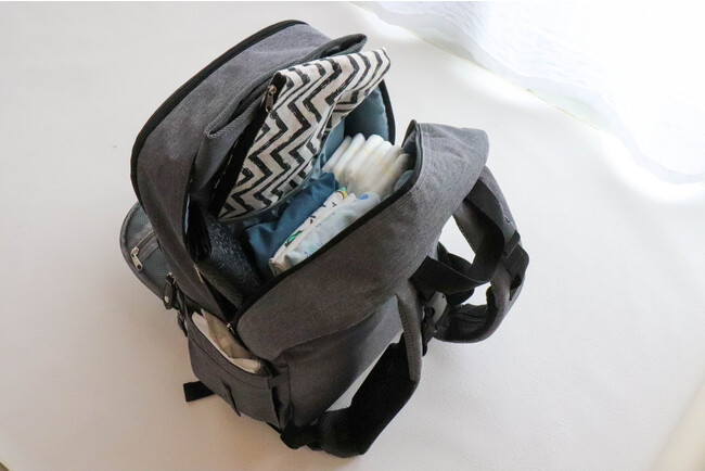 セカンドポケットには、オムツグッズをまとめて入れられます。