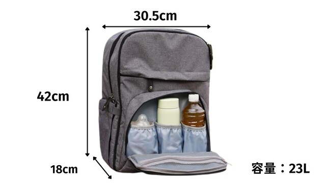 ☆両肩ポケットで鍵・カード・スマホがサッと出せる! ☆哺乳瓶、オムツなどアイテム別に入れられる専用ポケットで整う ☆大容量だから荷物はこれ1つでOK!