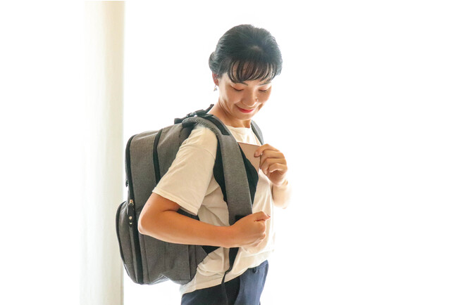 片手が塞がっていても、バッグを背負ったままスマートに鍵を開けることができます。