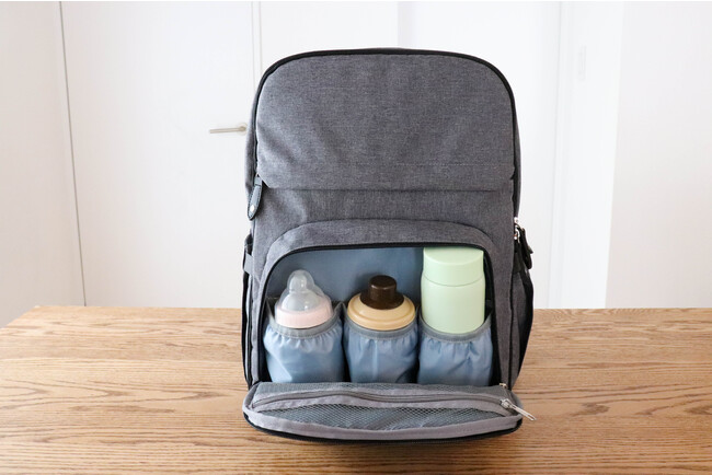 授乳グッズがまとめて入れられる、便利なフロントポケット