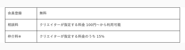 また、相談先になるクリエイターは相談料を受け取ることができます。