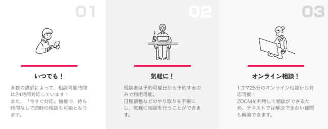 「いつでも・気軽に・オンライン相談」を特徴に相談者に寄り添うサービスとなっています。