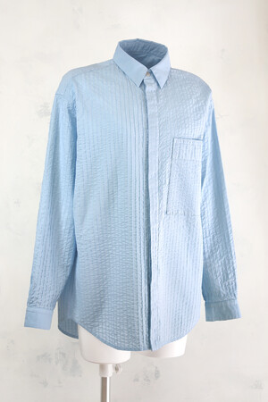 手仕事で仕上げるピンタックを全体に入れた、レギュラーカラーシャツ。ピンタックを入れることにより表現される、ストライプのような縞模様と、立体的な奥行きが特徴のシーンレスで使える1枚。