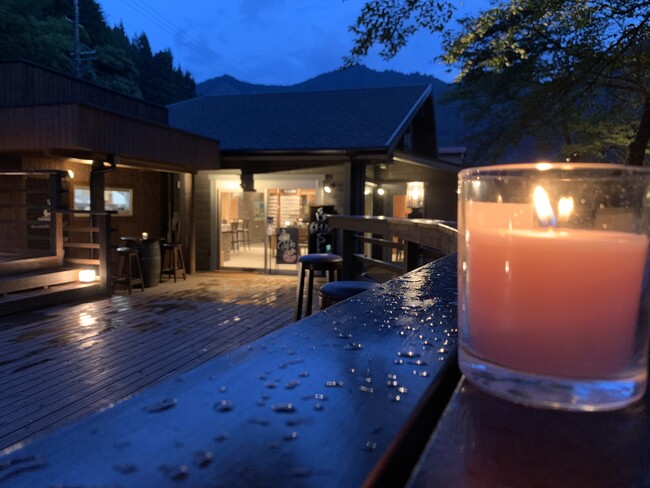店舗の外にはテラス席を併設しており、テラス席の前には立派な下北山村の桜並木が立っており、その奥には綺麗な清流が流れています。春には満開の桜を見ながらテラスで飲食できるのでインスタ映え間違いなしです!
