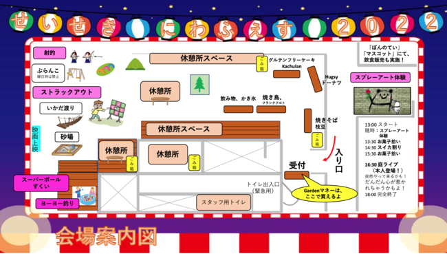 コンセプトに共感してくれたスプレーアーティストのCHOB-ONEさんが、特設壁に、ゼロから子供と一緒に描くスプレーアートを実施し、歌手のFIELD OF VIEW浅岡さんが、庭先でライブを開催します。庭ふぇす開催中、周辺飲食店が、路面販売を行います。