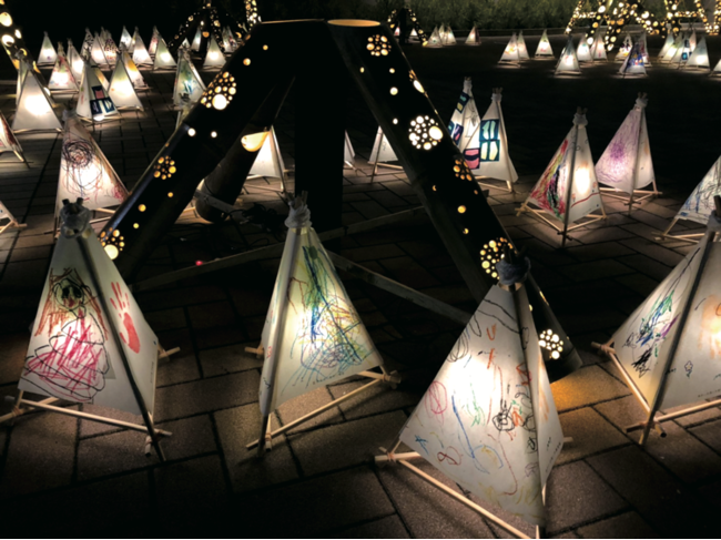 実施内容:竹あかりやオブジェ、および三角灯籠の制作・展示