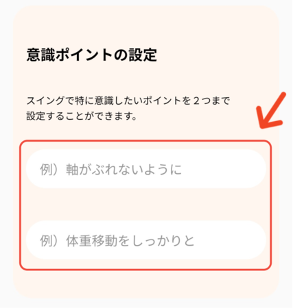 「NOBIL」の最大の特徴は、普段、監督やコーチから指導されていること、自分が練習の時に意識しているポイントを自分の言葉で設定(入力)できることです。