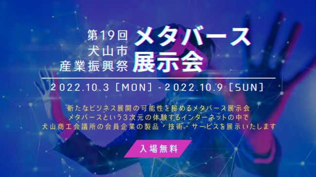 犬山商工会議所と「WEB3×地方創生」を推進する合同会社未来創世塾(本社:名古屋市、代表社員:岩田光洋、以下「未来創世塾」)は、犬山市産業振興祭メタバース展示会(以下メタバース展示会)を10月3日(月)~10月9日(日)の期間に開催する。また、これまで、東京や大阪など都心部の商工会議所がメタバースのセミナーを行うことはあったが、実際に、メタバース上での展示会を商工会議所が独自で開催するのは、全国初の事例である。(当社調べ22.9.15現在)