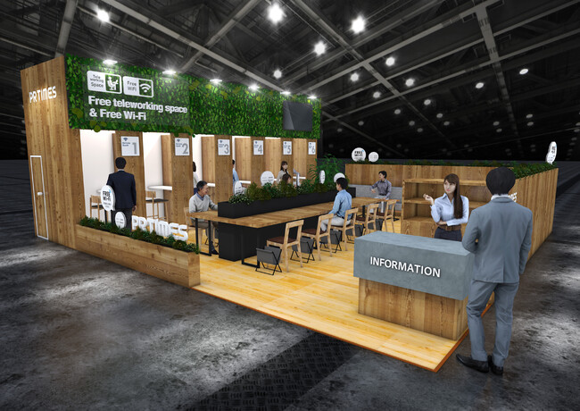 「PR TIMES」ブースのコンセプトは“来場者にほっと一息ついてもらえる、休憩・テレワークブース”です。