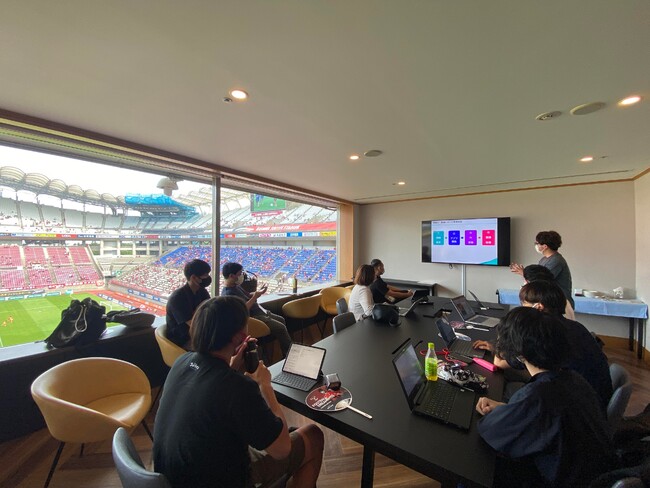 小泉氏と須田氏のアドバイザー就任を前に、8月14日アビスパ福岡戦観戦のため、茨城県内の起業家やその家族など20数名が茨城県立カシマサッカースタジアムを訪れ、試合前には起業家5名が小泉氏向けにプレゼンを行い、小泉氏より直接フィードバックやアドバイスを受けました。