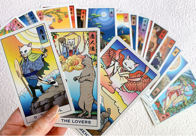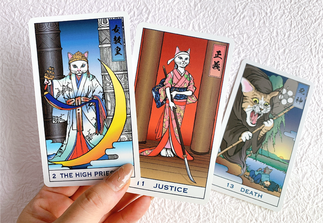 武将に忍者、お姫様。着物を着たねこ達が江戸を舞台に活躍するタロットカードを使って、あなたも占いに触れてみませんか?