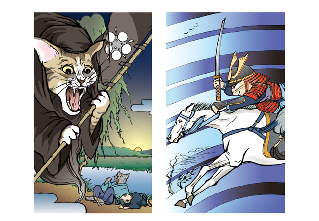 武将、忍者にお姫様…着物を着たねこがお江戸を舞台に大活躍。それが『今はむかし にゃんこたろっと』です。タロットカードに触れたことがない方も、「ねこ」をきっかけにタロットに触れていただければ...と思い、にゃんこ達を主役に、まるで浮世絵のような和風イラストに仕上げました。