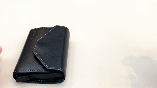 スライドボタン一つでカードがスッと取り出せ、収納はカードホルダーにそのまま入れるだけです。