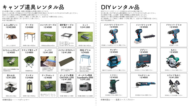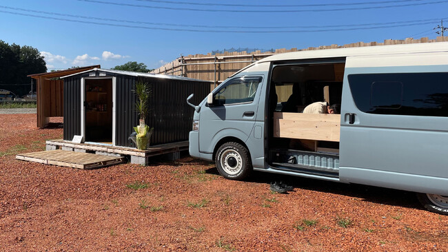 車を横付けしてDIYができるサイト。そのまま宿泊も可能。車をカスタムしたりキャンプギアを作ったり使い方は自分次第。レンタル工具も充実。