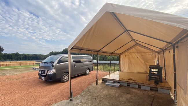 車中泊専用サイトは17台分。観光ついでの宿泊手段としても、純粋に車中泊を楽しむスペースとしても利用可能。ガレージテント付きのサイトなら雨の日でも楽しめる。