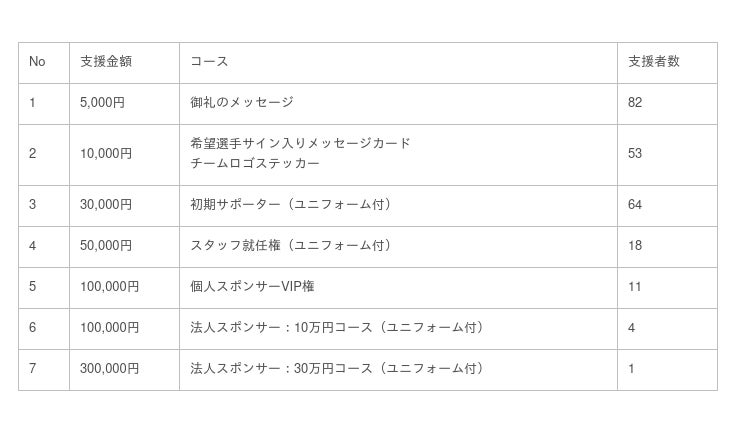 クラウドファンディングの資金用途を明確にした上で、来シーズンの体制の発表を行いたいと思います。