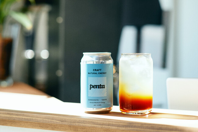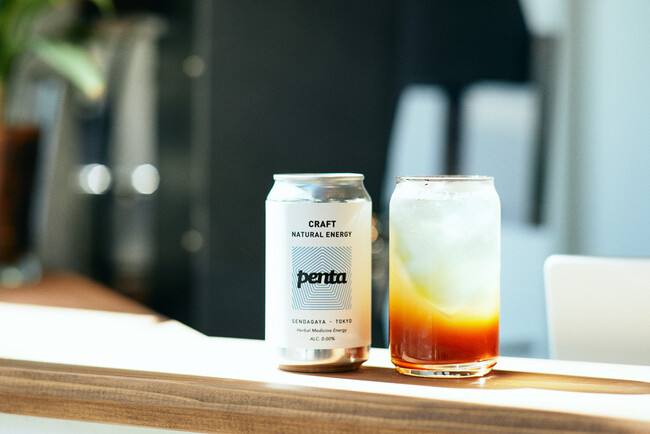 pentaは食材から得られる天然のエナジー成分を主原料としたカフェインや白砂糖を使わない身体に優しいエナジードリンクです。脳の活性化・リフレッシュ・覚醒をキーワードに厳選した自然素材の効能を生かすオリジナルブレンドの薬膳シロップを、割ものを選んでカスタムオーダーいただきその場でアルミ缶に充填してご提供します。