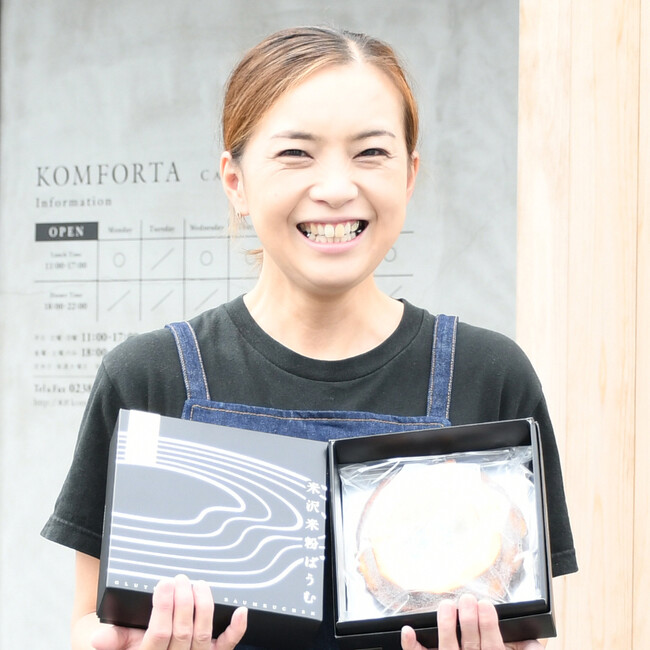 KOMFORTAの代表。元病院勤務の経歴を持つ。癌を患った父に、小麦粉より消化の良い米で麺を作った経験や、腸が弱った人にも食事を楽しんでほしいという思いから開業を決意。使用する米として主に地元産の規格外品を扱うなど、地域活性化にも貢献。米沢産の米粉と卵を使った「米沢米粉バウムクーヘン」を広めることで、コロナ禍で消費の落ち込んだ食材を活用し、さらには米沢土産として観光客が米沢に来たくなるきっかけの一つにしたいという思いを持つ。