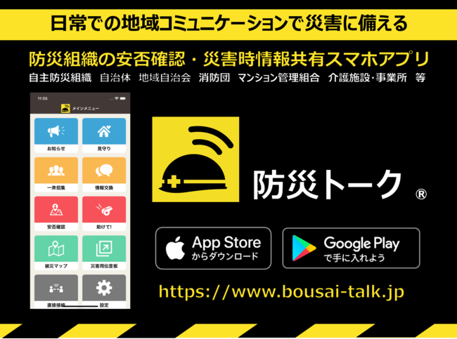 防災アプリ「防災トーク」、防災組織の安否確認・災害時情報共有を大幅改良、新規ご利用半年間無料キャンペーン開始