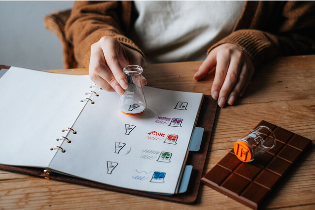 ノートや手帳に押したり、自分だけのインク帳を作ってお楽しみください。