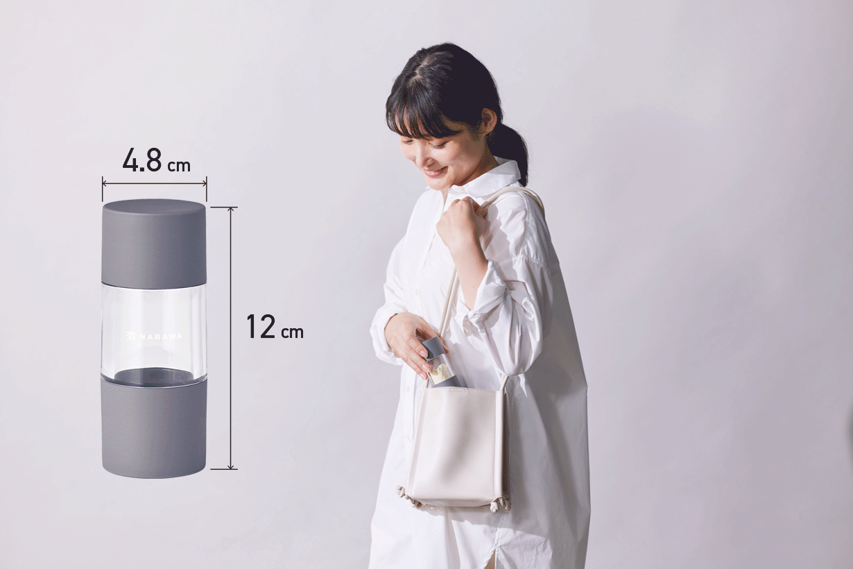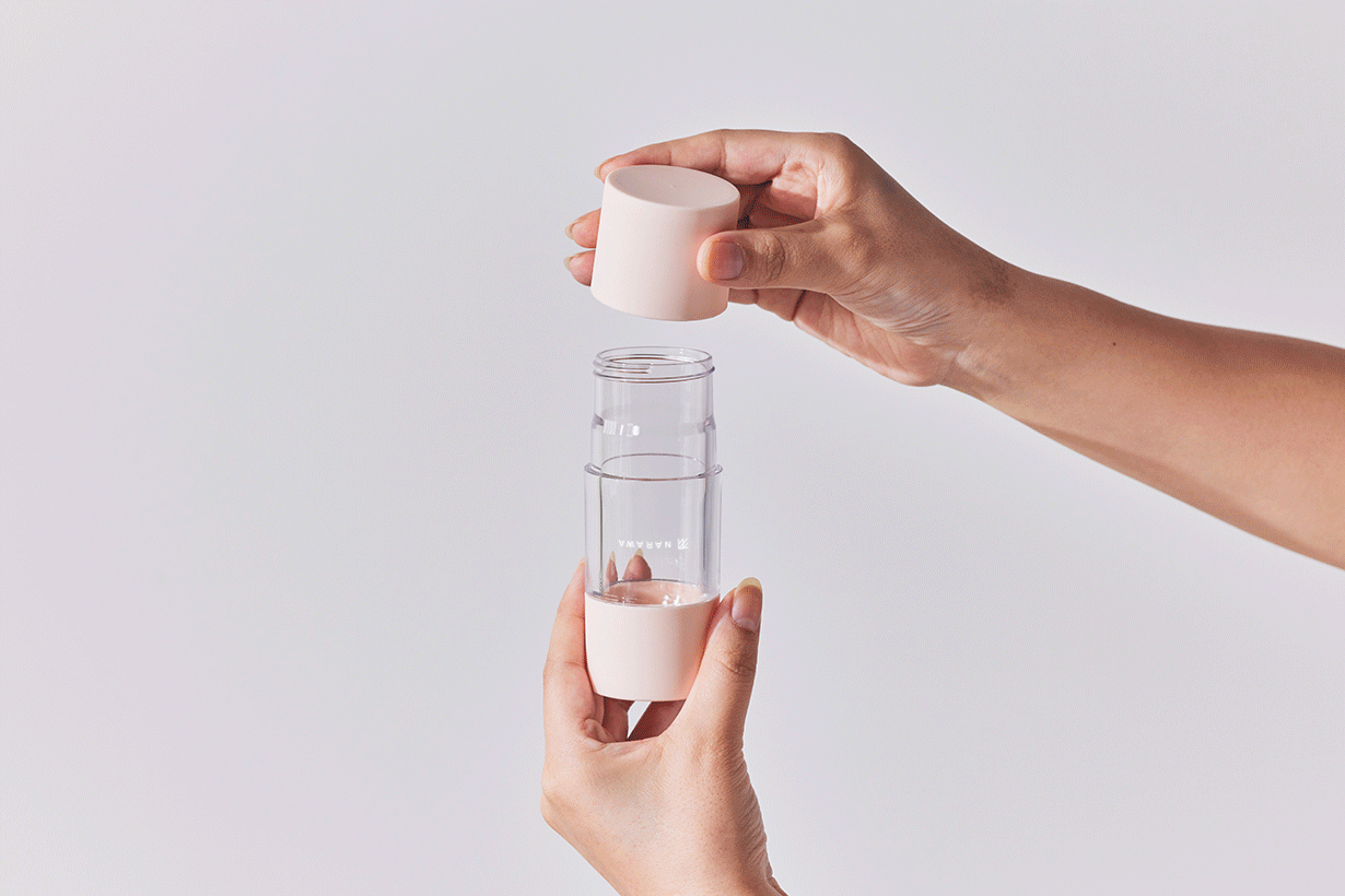 サプリメントやスーパーフードを持ち運ぶ際にも最適なマルチボトル。大容量の袋からボトルに入れることで、小分けにするための小袋が不要になるなど、環境にも配慮しています。